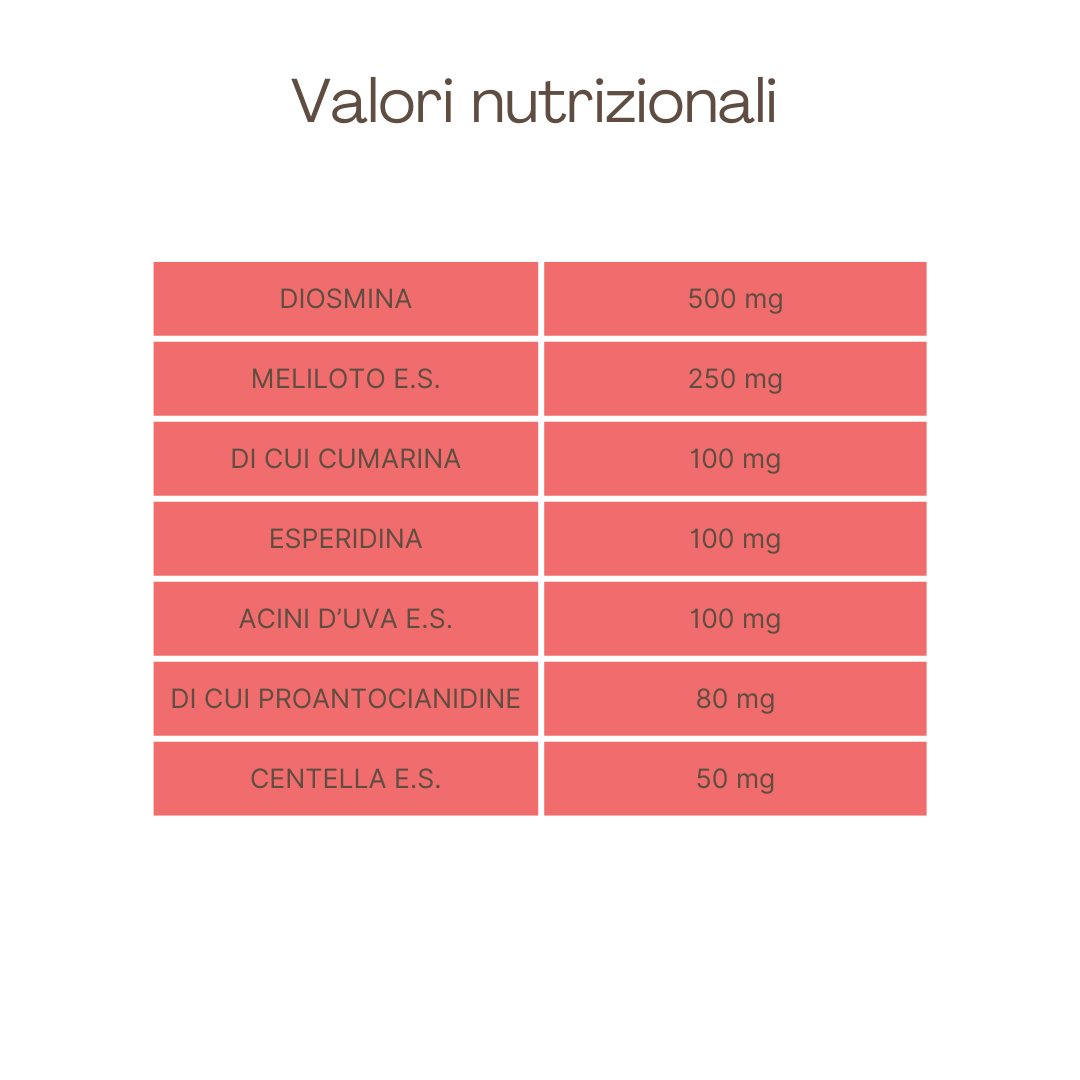 1–2 compresse al giorno • Uso continuativo consigliato • Complesso vasoattivo e drenante
